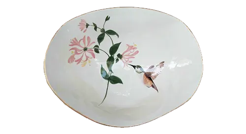 This traditional glaze technique results in a glossy finish with clean, clear colours.